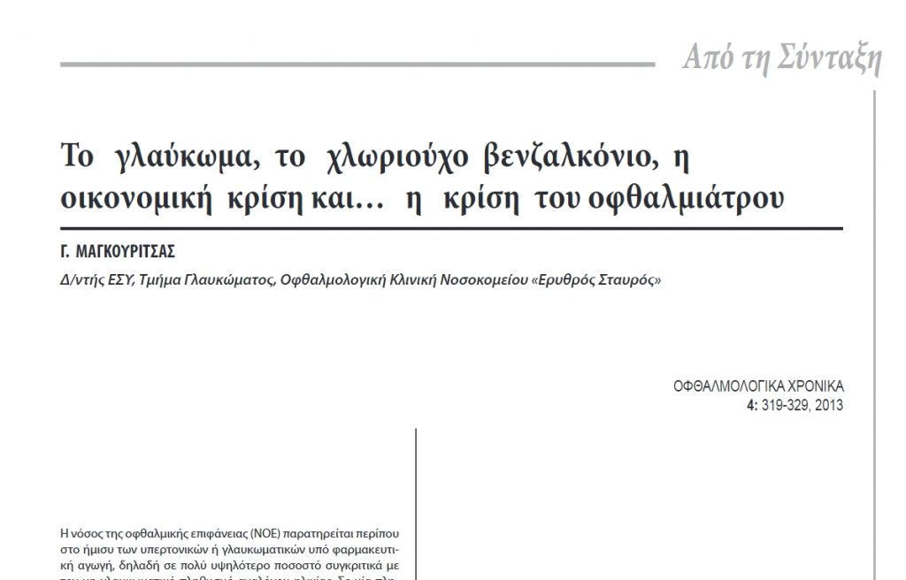 ΓΛΑΥΚΩΜΑ ΧΛ ΒΕΝΖΑΛΚΟΝΙΟ ΚΑΙ Η ΚΡΙΣΗ